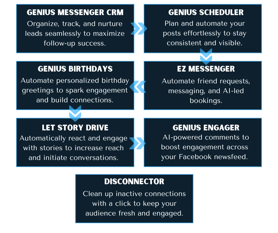Remember, the Genius Growth Suite isn't just about automating tasks. It's about transforming your entire approach to business. It's about freeing you from the mundane so you can focus on what truly matters – creating value, building relationships, and living life on your own terms.